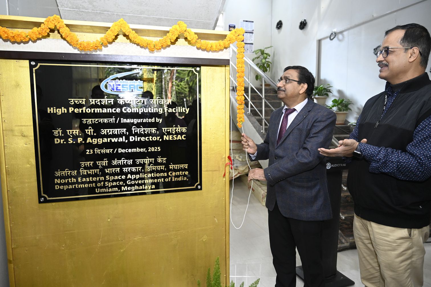 The High Performance Computing (HPC) system of NESAC with 1440 cores and peak performance of 119 TFLOPS, was inaugurated by Dr. S. P. Aggarwal, Director, NESAC, on 23rd December 2025, in the presence of Dr K K Sarma, Group Head, RSAG. The program was also attended by the Heads of Divisions and scientists of the Centre as well as the representatives from the vendor who supplied the system.