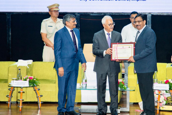 डॉ. एस.पी. अग्रवाल, निदेशक, एनईसैक मणिपुर के माननीय राज्यपाल से प्रशंसा पुरस्कार प्राप्त करते हुए